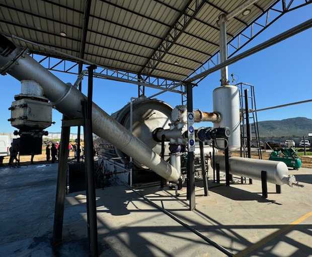 Opera con llantas desalambradas y plásticos mixtos; capacidad 25 t/día. Produce aceite pirolítico para destilación, aprovecha gas del proceso para precalentar el horno y desvía >8,000 t/año de residuos de relleno sanitario. Uptime 92% con contratos municipales y privados.