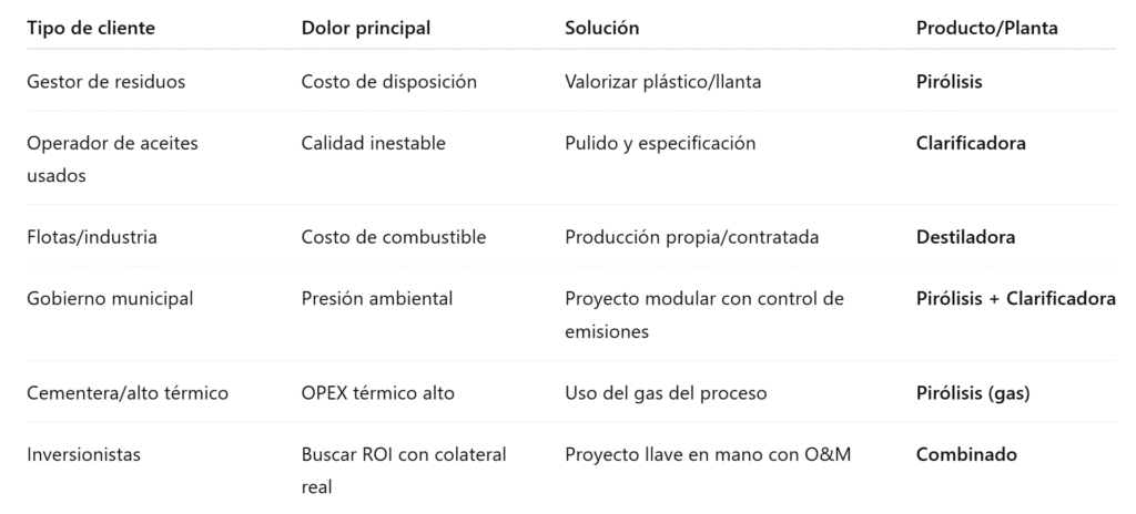 Atendemos a gestores de residuos, gobiernos, industria y flotas que buscan convertir residuos en combustible con ROI acelerado, trazabilidad y cumplimiento ambiental.