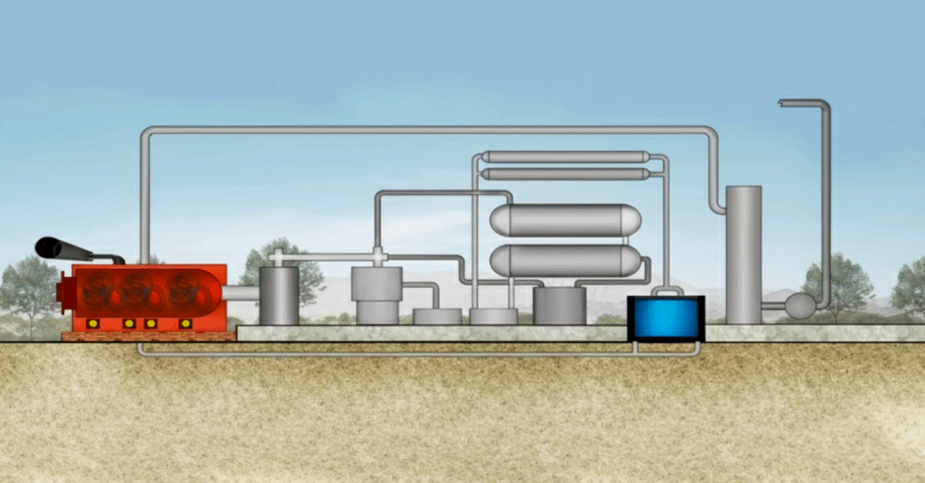 Los productos finales de las plantas de pirólisis son Diesel de Alta Calidad, Gas Natural y Negro de carbono.